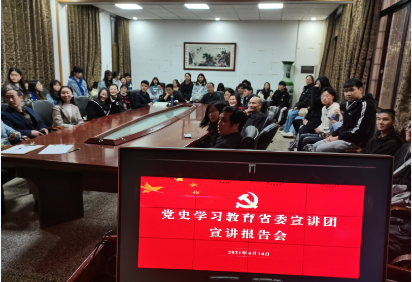4月14日下午,学校邀请党史学习教育省委宣讲团刘建平教授来校开展专题宣讲,yl6809永利按照学校安排,组织师生在学院105会议室通过网络直播进行收看。