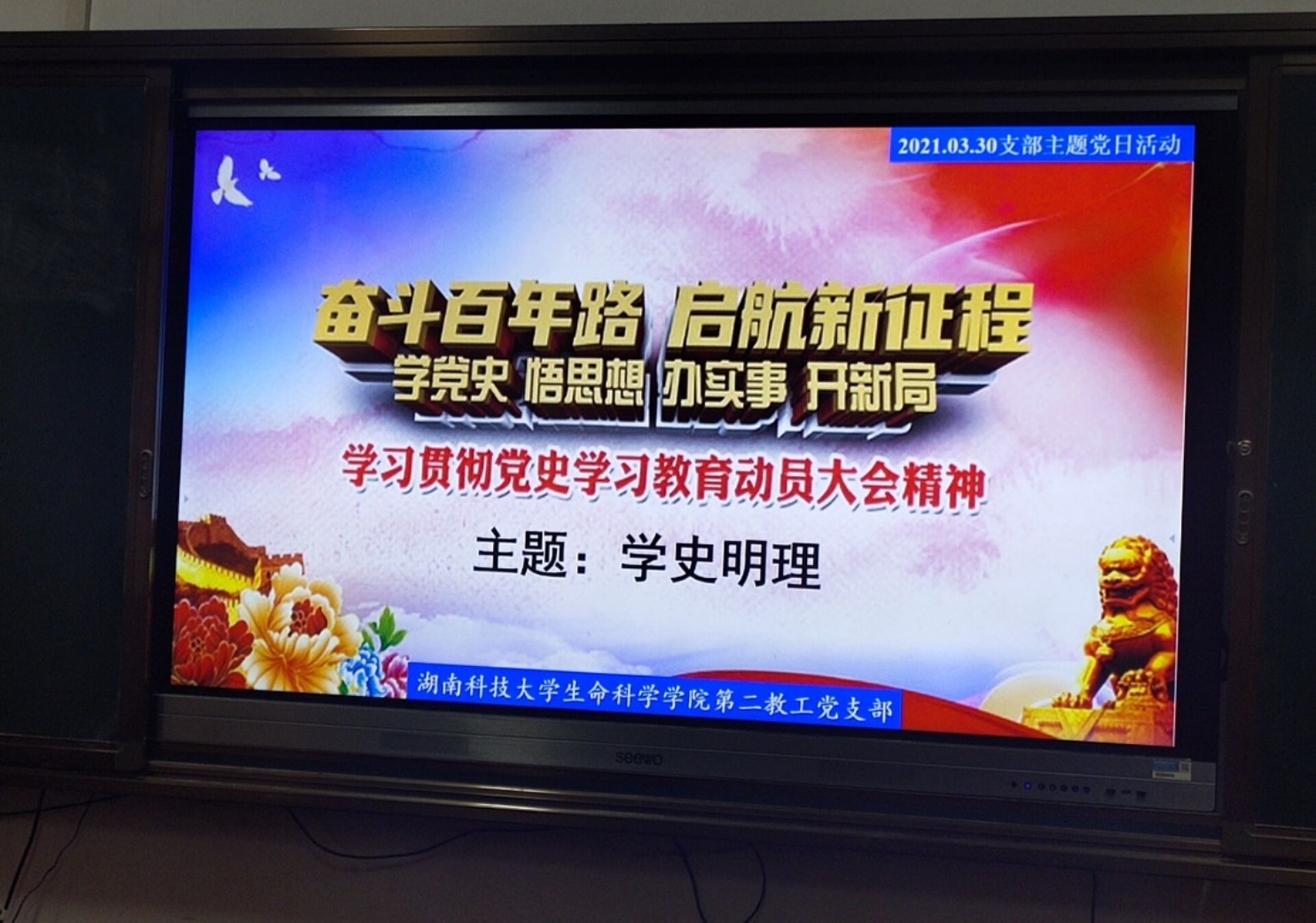 2021年3月30日,yl6809永利第二教工党支部在生科楼118室召开本年度支部党史学习教育动员大会,深入学习贯彻习近平总书记在党史学习教育动员大会上的重要讲话精神,对支部开展党史学习教育进行动员部署。并且以“学史明理”为主题,结合工作实际,就深入开展党史学习教育、推动学院高质量发展等工作开展研讨交流。