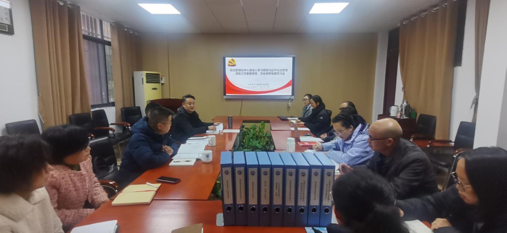 12月22日上午,yl6809永利党委理论学习中心组在生物楼110会议室举行2025年第12次集体学习,专题学习习近平法治思想、习近平总书记关于加强和改进民族工作的重要思想以及习近平文化思想。学院党委书记龙赢主持学习会,党委理论学习中心组成员、三办主任、各系部负责人、教工党支部书记、组织员等参加学习。
