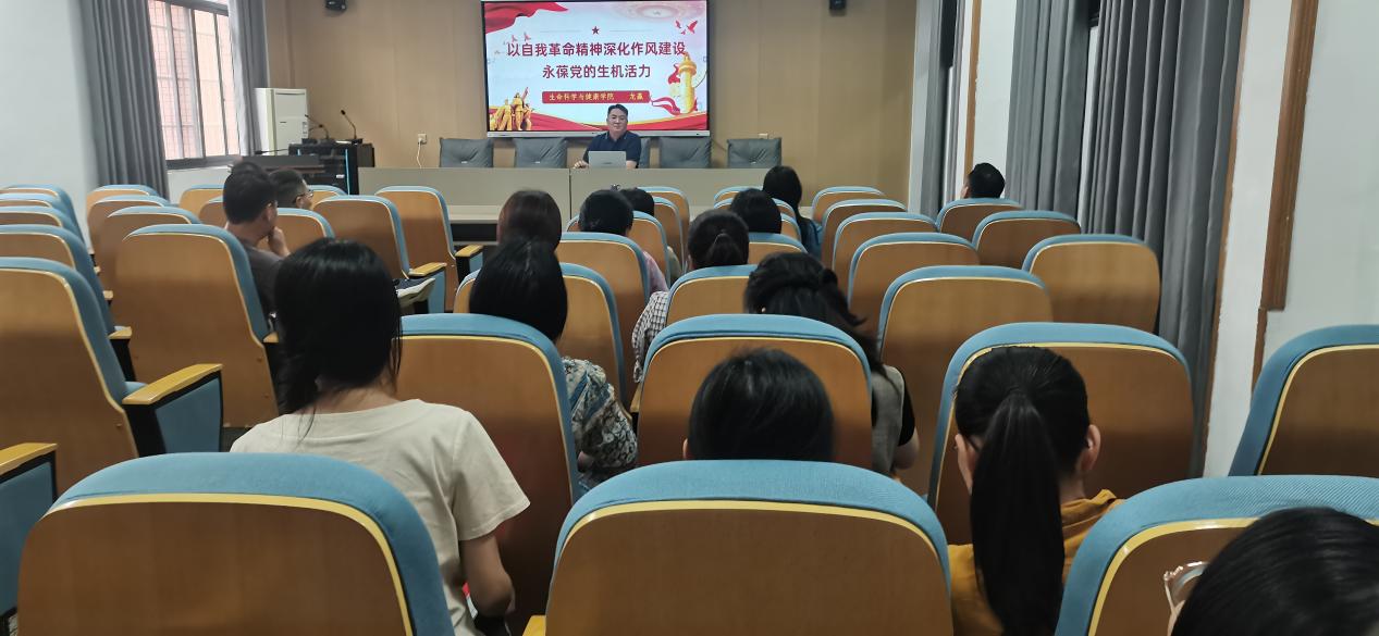 6 月 3 日下午,我院党委书记龙赢同志在生科楼 105 室,以 “以自我革命精神深化作风建设,永葆党的生机活力” 为题,为学院党委班子成员及全体党员教师讲授了一堂意义深远的专题党课。此次党课紧密围绕党的作风建设,结合新时代全面从严治党的要求,深入剖析了作风建设的重要性与紧迫性。