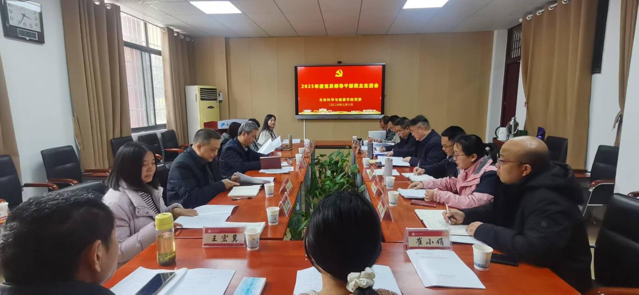 2026年3月10日下午,我院党员领导干部在生物楼110会议室召开2025年度民主生活会,围绕本次民主生活会主题,深入查摆剖析,认真开展批评和自我批评,明确整改举措和努力方向。院党委书记龙赢主持会议并作总结表态讲话,学院领导班子非党员领导干部、党委委员、三办主任、各党支部书记及组织员等列席会议。校党委委员、副校长余伟健与湖南科技大学保卫部、武装部副部长胡小虎到会指导。