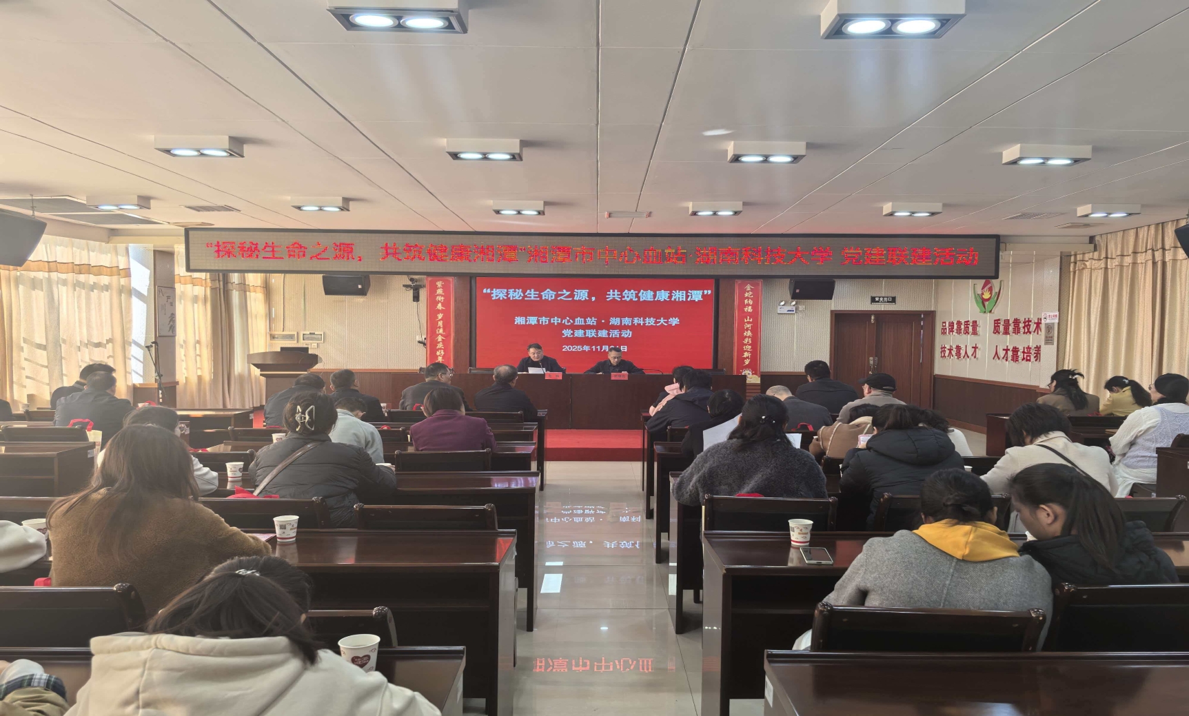 11月21日,湖南科技大学yl6809永利与湘潭市中心血站开展党建联建活动,通过理论学习、科普宣讲与实践参观相结合的方式,推动无偿献血公益事业与高校思政教育深度融合。市中心血站党总支书记张俊良,我院党委书记龙赢、党委副书记舒艳及学院师生党员代表出席本次活动。
