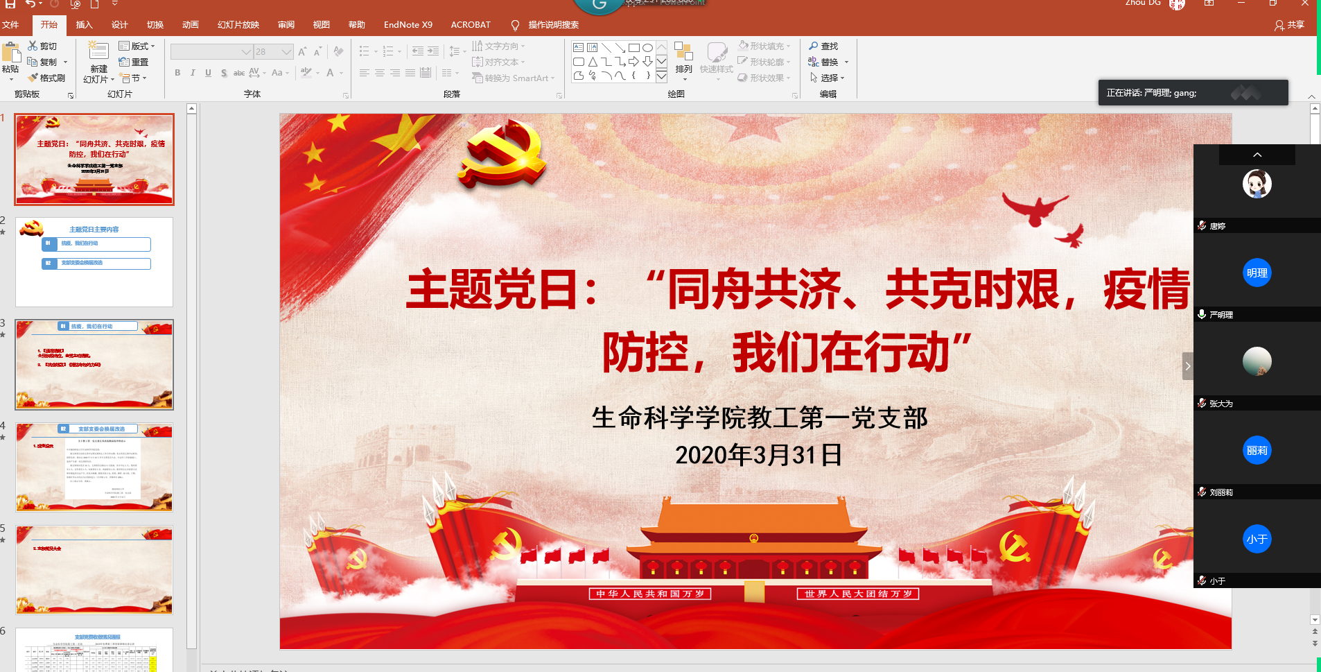 3月31日下午,yl6809永利教工第一党支部通过腾讯会议系统开展了主题党日活动,支部的全体党员参加此次线上会议,此次会议由第一党支部书记周定港主持。