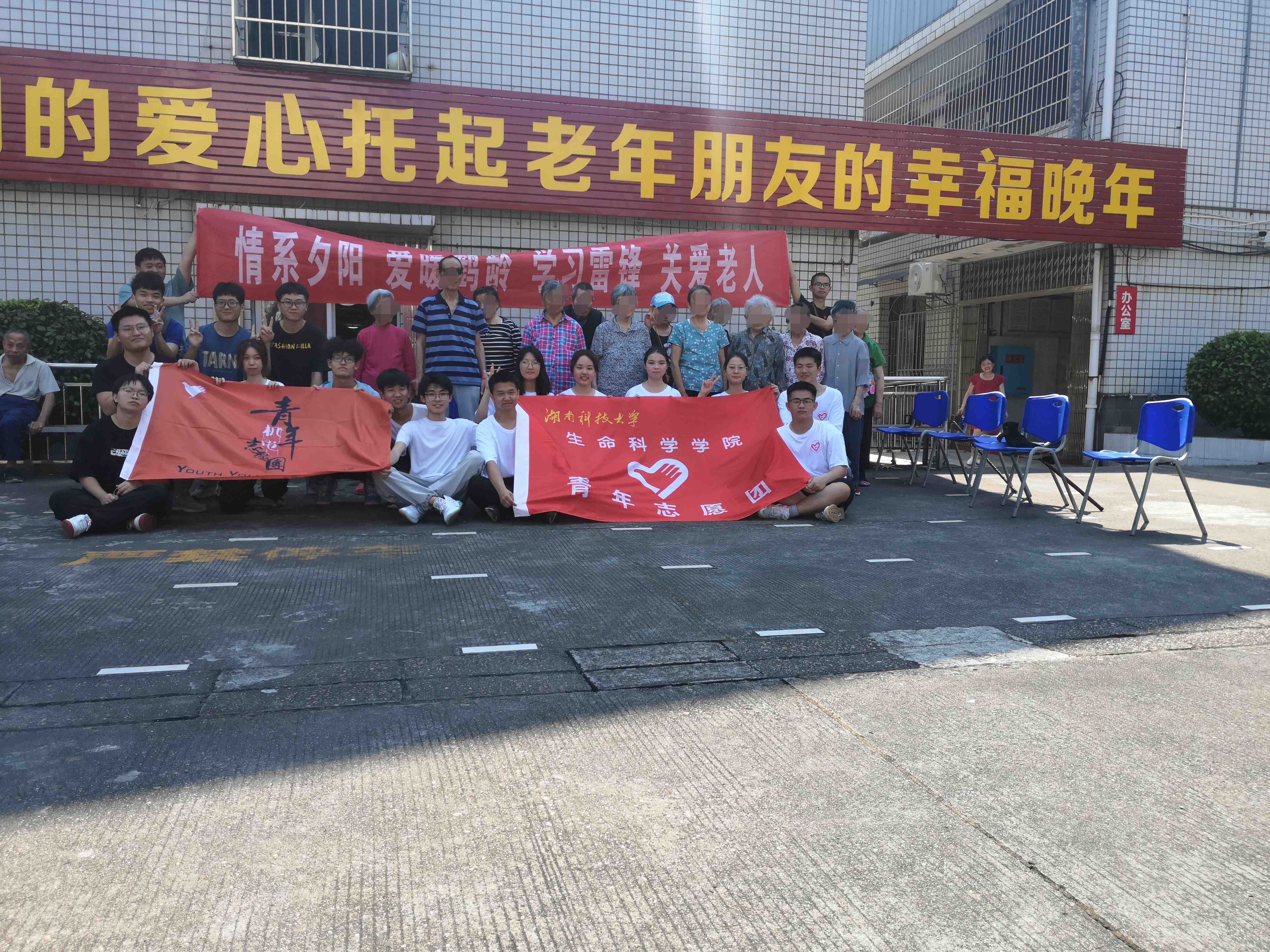 这天阳光明媚,早晨七点四十五,青年志愿团在北校门口集合完毕,乘坐公交车来到了市中心鹤龄敬老院。一进入敬老院,映入眼帘的是老人们慈祥的笑脸,她们有些已早早的起来了坐在阴凉处聊天唠嗑,有些在树荫下做锻炼,看见我们来了,纷纷朝我们招手问好。给爷爷奶奶问好后,我们拿出提前给爷爷奶奶们准备好的水果分发给她们,坐在她们的身旁,倾听与诉说着属于彼此的故事。我们也来到了爷爷奶奶的房间里,帮她们打扫卫生整理房间。