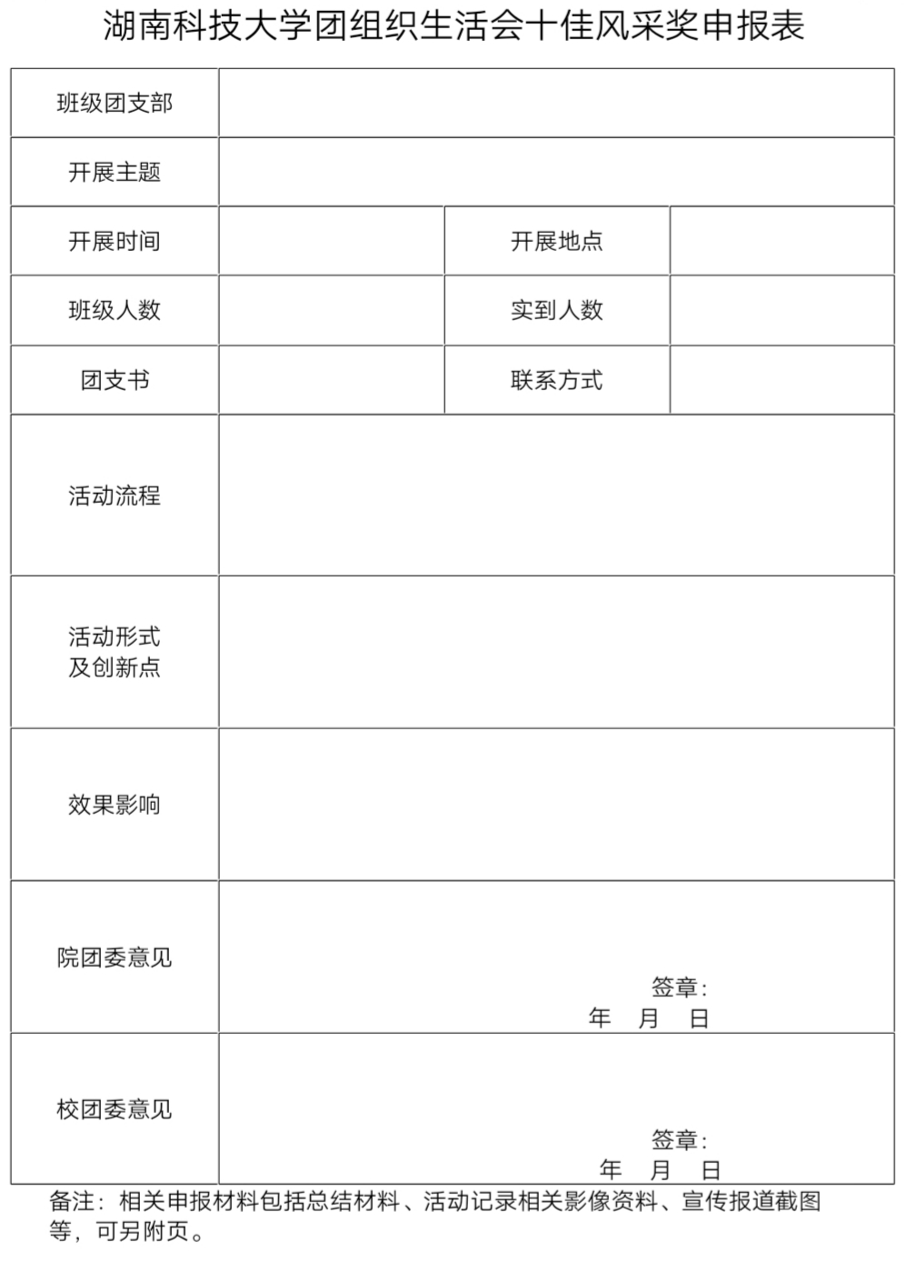 2.《湖南科技大学团组织生活会十佳风采奖申报表》湖南科技大学委员会