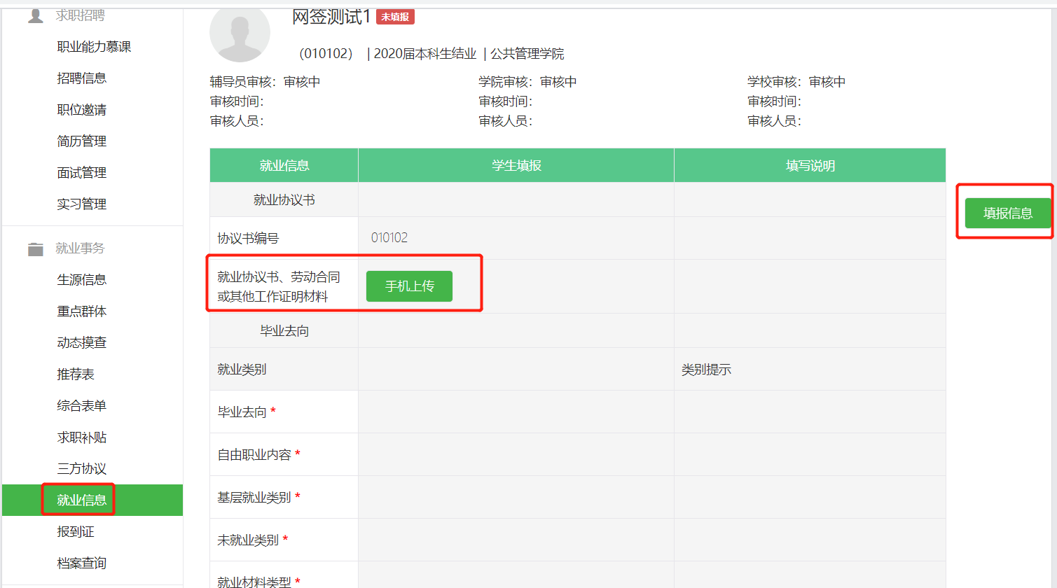 学生签约完成后,上报就业信息(学生)
