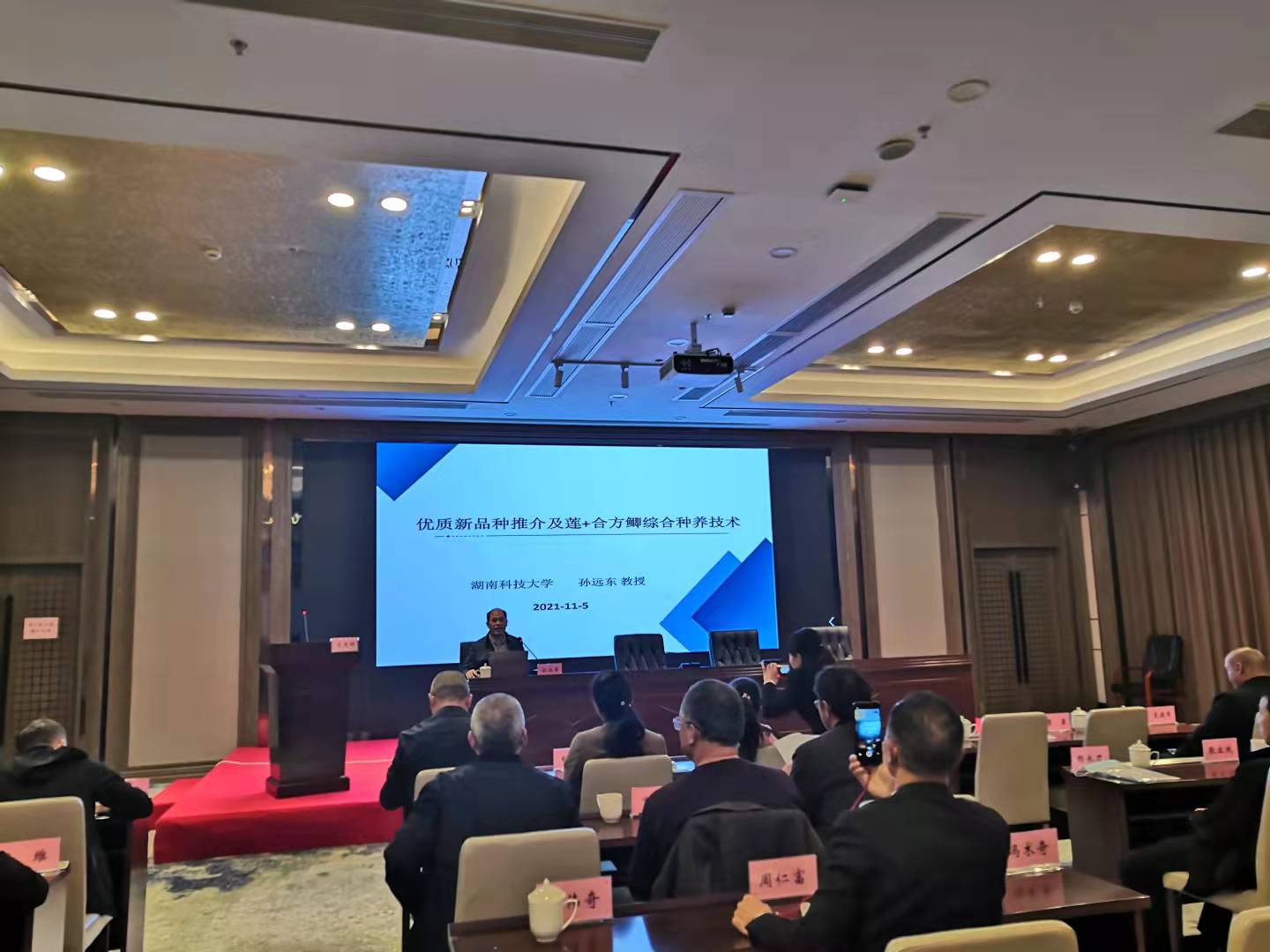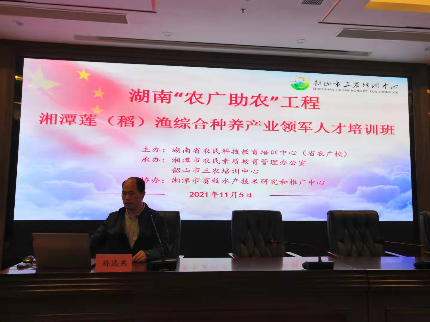 2021年11月5日,yl6809永利孙远东教授应邀给“湖南‘农广助农’工程湘潭莲(稻)渔综合种养产业领军人才培训班”学员授课。
