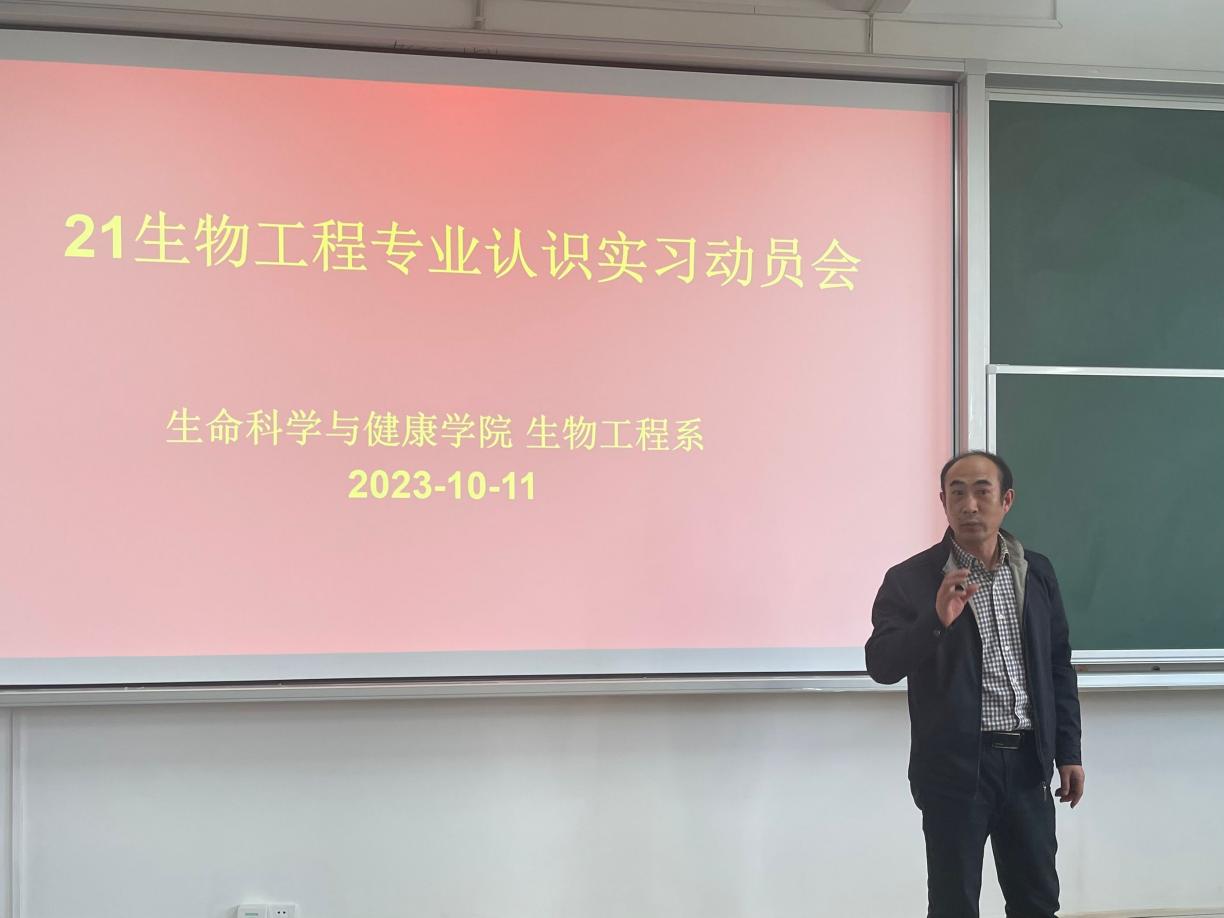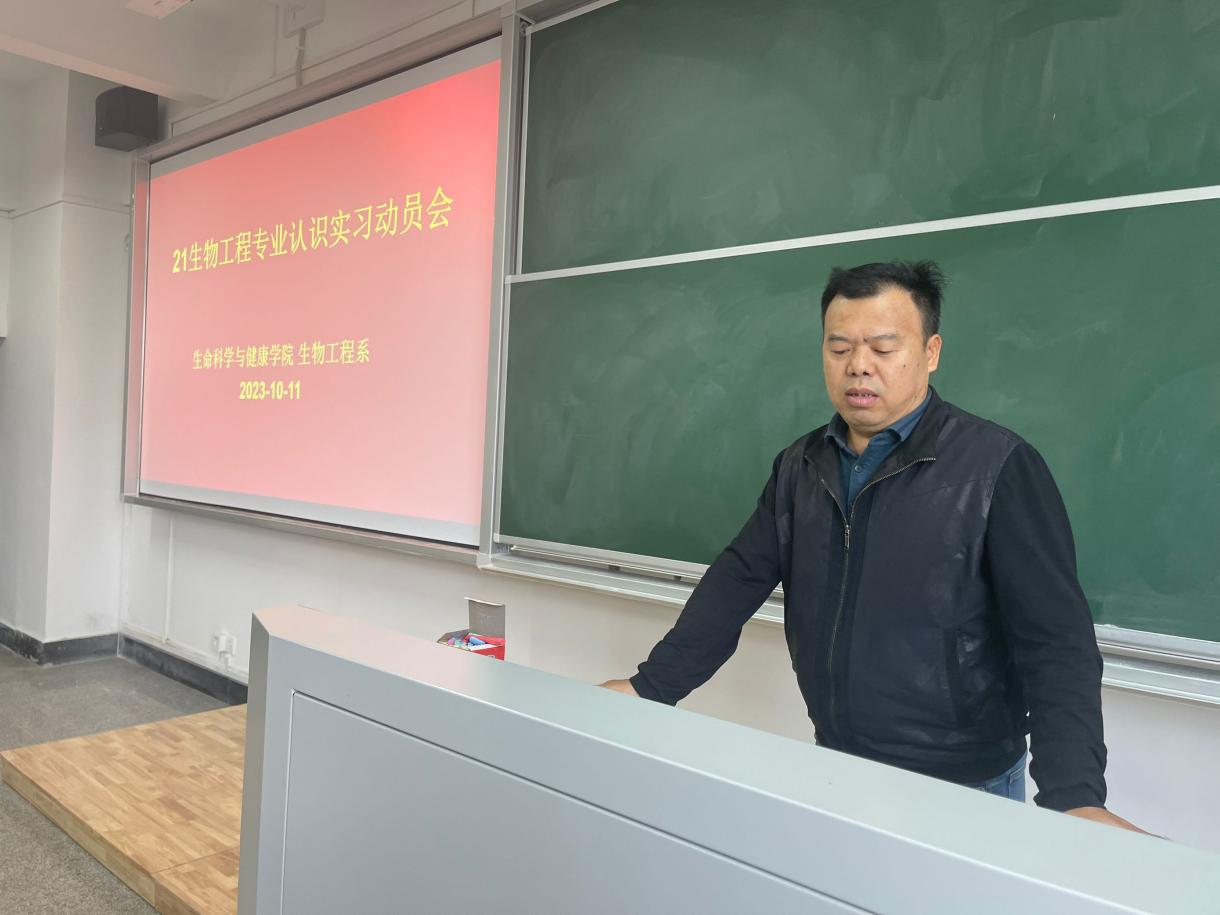 为全面促进2021级生物工程专业学生认识实习工作顺利进行,10月11日,yl6809永利在八教313教室举行2021级生物工程专业认识实习动员会。yl6809永利副院长梁飞扬,生物工程系系主任刘长军,实验室主任许爱清,2021级生物工程班主任张翼飞出席此次会议,2021级生物工程专业全体学生到场聆听。