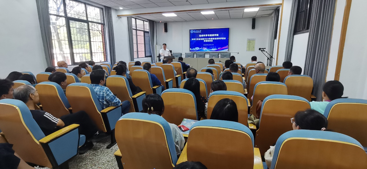 为做好我院2024年度国家自然科学基金申报工作,进一步提高我院国家自然科学基金申报质量和数量,10月17日下午2:30,我院在生物楼105会议室召开了“科研工作会议暨2024年国家自然科学基金申报动员会”。会议特别邀请校党委委员、纪委书记郭时印和科技处张少伟副处长莅临现场指导讲话,国家优青获得者、信息学院副院长陈超洋教授和我院吴金锋副教授进行国自科申报的专题讲座。会议由院党委副书记、副院长龙赢主持,全体教职工参加了动员大会。