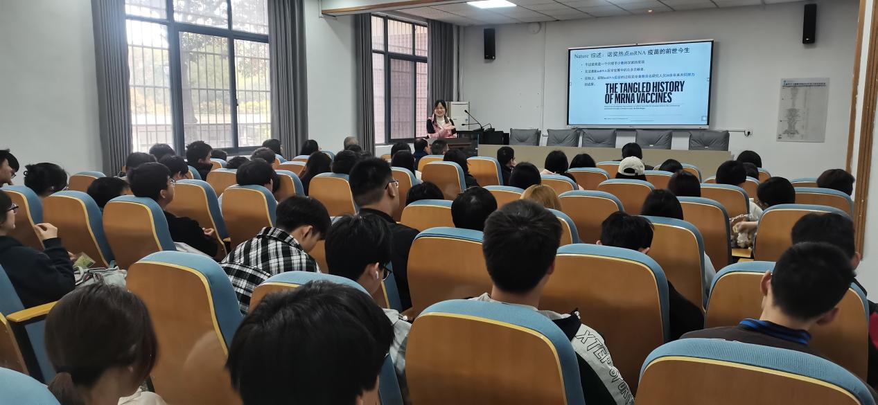 4月2日上午,由本科生院主办、yl6809永利承办的“科技人文大讲堂”第80讲《mRNA技术如何重塑医学未来——从疫苗研发到生命科学革命》在生物楼105举行。本次讲座由童婷博士主讲,副院长刘长军主持,我院师生代表参加。