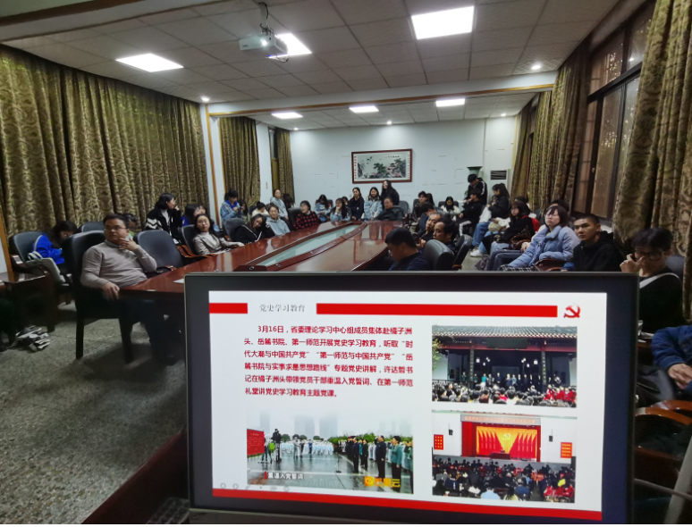 刘建平教授从深入学习领会习近平总书记关于党的历史的重要论述,切实增强开展党史学习教育的政治自觉和行动自觉;认真研读党史基本著作,全面了解中国共产党百年奋斗的光辉历程和历史贡献;把百年党史与湖南巨变联系起来把握,深刻感悟百年党史湖南篇章的作为与担当;学习湘潭党史,传承红色基因;深刻把握党史学习教育重点要点,不断从党的光辉历史中汲取砥砺奋进的智慧和力量等五个方面进行生动阐述。