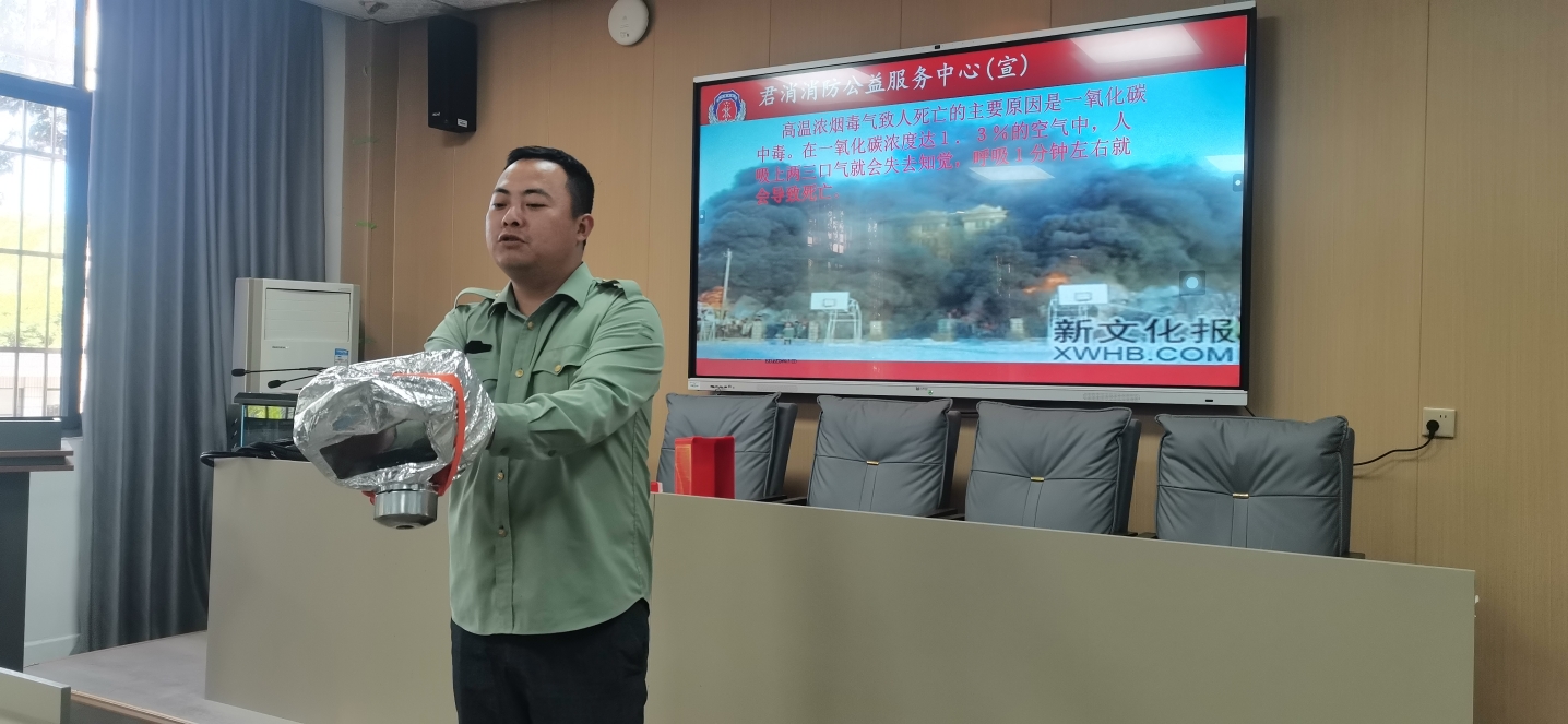 随后,消防培训环节邀请了君消消防宣传中心的专业消防教官蔡继雄进行授课。教官通过播放火灾事故视频、展示消防器材等方式,生动形象地讲解了火灾的成因、预防措施以及火灾发生时的应急逃生技巧。现场演示了灭火器、防护面具等消防设施的正确使用方法,并组织教职工进行实际操作演练,使大家在实践中掌握消防技能,切实提高了全体教职工的消防安全意识和应急处置能力,为校园消防安全构筑了坚实的防线。