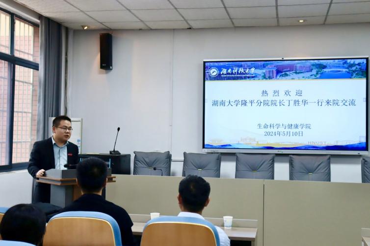 首先,周定港向我们介绍了隆平分院近期的研究成果,并向我们隆重介绍了丁胜华教授的成就。随后,丁胜华简要介绍隆平分院的历史、规模、师资力量、教学设施等情况,展示学院的整体实力。对于专业特色方面的介绍,院长详细讲述了隆平分院的专业设置、特色课程、研究方向以及取得的成果,特别是那些在学术界和社会上有一定影响力的成果;对于该院的学生生活方面,丁胜华展示了隆平分院的学生活动、实验室生活、校园文化等,让我院在场学生了解了在隆平分院学习的日常生活和氛围。