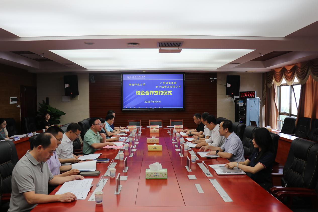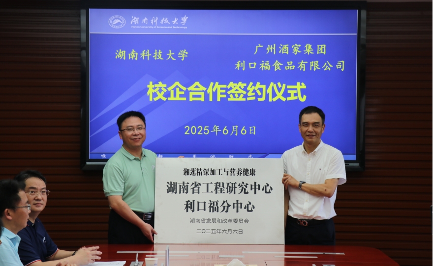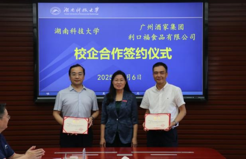 广州酒家集团利口福食品有限公司作为国家食品重点企业、中华老字号,其广式莲蓉月饼连续多年处于行业领导地位,且连续三年全球销售额第一。湖南科技大学一直秉持“服务地方、振兴产业”的使命,积极融入地方经济社会发展,尤其在湘莲特色产业方面重点发力。2023年11月,在湖南省直相关部门及湘潭市委、市政府推动下,学校联合多家单位组建湖南湘莲产业研究院,2024年获批“湘莲精深加工与营养健康”湖南省工程研究中心,并取得阶段性成果。此次合作,是双方深入贯彻落实习近平总书记重要指示精神,推动湘莲产业与高等教育深度融合的创新之举,也是双方优势互补、协同发展的积极探索。