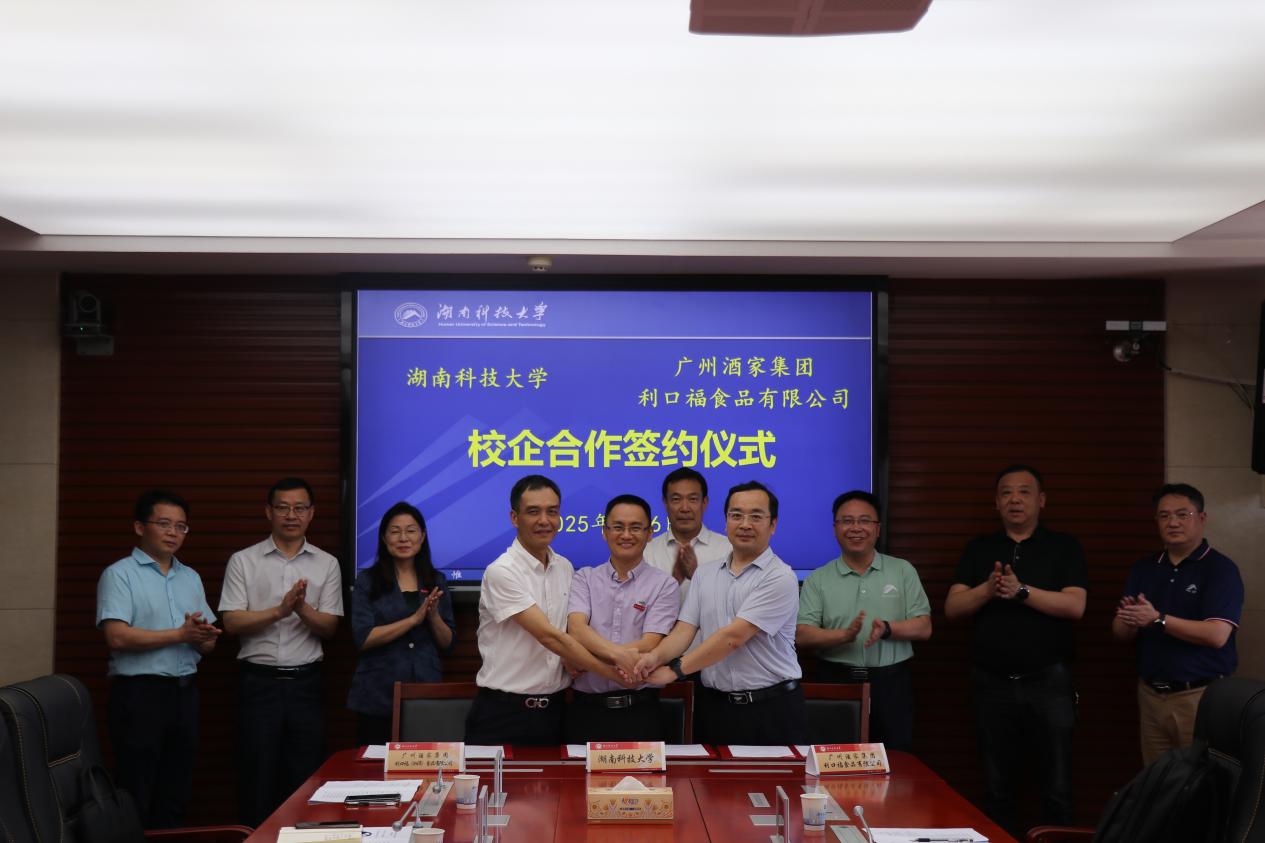 6月6日,湖南科技大学与广州酒家集团利口福食品有限公司成功举行湘莲产学研合作签约仪式。签约仪式由湖南科技大学校党委委员、纪委书记郭时印主持,湖南科技大学党委副书记谢慧,利口福食品有限公司总经理刘守平等双方领导及专家出席仪式。