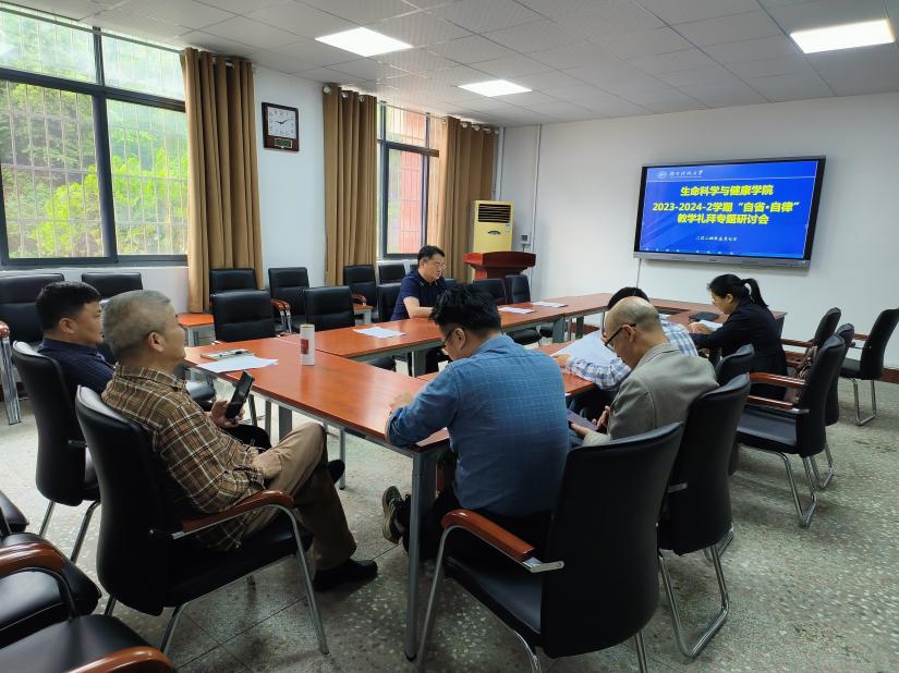 5月7日上午,yl6809永利2023-2024-2学期“自律·自省”教学礼拜专题研讨会在生物楼110进行,党委书记龙赢、副院长周定港、党委副书记舒艳、各系部主任、实验中心主任及教学指导委员会全体成员与会。