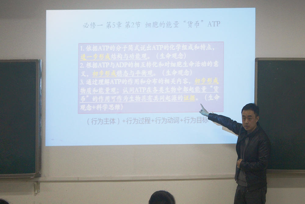 曾峰主任结合目前高中学生现状和改革情况进行了讲学,主要从教学依据、发展方向、高中课程标准的基本内容和宗旨要求等方面展开。对于教学依据,曾主任介绍了三套书——普通高中生物学课程标准、2019年高考大纲、考试说明以及初高中生物学教材;在发展方向方面,提供了三种教学模式——单元教学、深度教学、教学-评一体化;在宗旨要求中,主要强调了学科核心素养。之后,开始了互动答疑环节,老师、同学们都积极提问,曾主任现场答疑解惑。