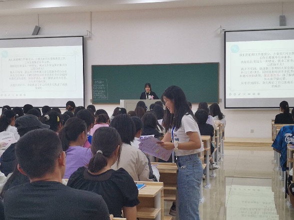 在所有部门宣讲结束后,我院第二十届团委学生会执行主席郗欣雨上台总结。她首先对全体2022级新生们的到来表示欢迎,并通过自己的亲身经历讲述了团委学生会是一个温暖有爱的大家庭,每个人在其中都能收获颇丰,鼓励新生们积极报名参与团委学生会,锻炼自己、实现个人价值、服务学院师生。