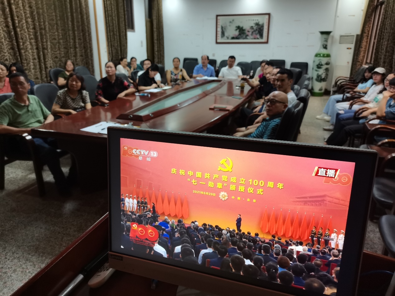 上午十点,105会议室齐聚师生代表35名,观看“七一勋章”颁授仪式。