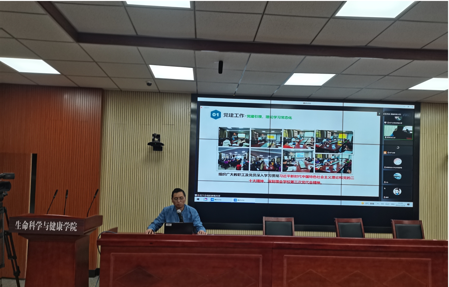 学术报告交流过后,全院教师采用线上线下相结合的座谈会方式对学院发展战略进行研讨。首先,王海华书记对2022年度学院的党建引领、教育教学、人才培养、科学研究、社会服务等五个方面进行工作报告。随后全体教职员工对学院发展进行研讨,研讨主题包括:学术方向凝练和科研团队建设、青年教师的成长,生物教学法研究的推进、学术交流的加强等。与会教师踊跃发言,会场气氛热烈。